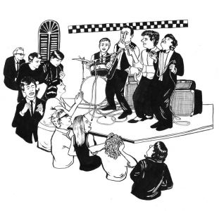 Ende der 1950er Jahre finden sich Jugendliche in Skifflebands zusammen, die Musik in der Tradition US-amerikanischer Folk-, Blues- und Countrybands spielen. Der Stil kommt über Großbritannien nach Deutschland und ist beliebt, da es relativ einfach und kostengünstig ist eine Skiffle-Band zu gründen. Die jungen Musiker*innen benutzen selbst hergestellte und gefundene Musikinstrumente wie Kistenbass und Waschbrett. Bekannte Treffpunkte und Auftrittsorte in West-Berlin sind die Eierschale, die Badewanne und die Dachluke. Es gibt Wettbewerbe, z. B. den um Das Goldene Waschbrett, der vom Berliner Senat ausgerichtet wird. 1961 treten hier 52 Berliner Skifflebands an, es gewinnen die Skiffle Lords.